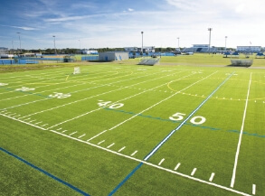 全10種目ごとに設計された専用グラウンドやコート、最新鋭のトレーニングジム、室内練習場、さらにプロと同レベルの設備を持つコンディショニング施設を完備。選手の体調管理やケガ予防のため、スポーツ医学やリハビリテーション施設も完備されており、トップアスリートの育成に最適な環境を提供しています。