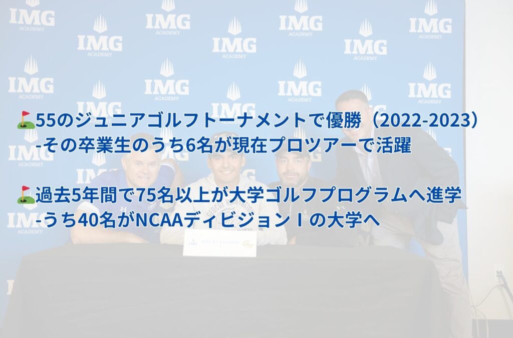 2022-2023年度のスクールイヤーでは、IMGアカデミーの選手が55のジュニアゴルフトーナメントで優勝し、彼らのうち数人は、すでにプロゴルファーとして活動しています。